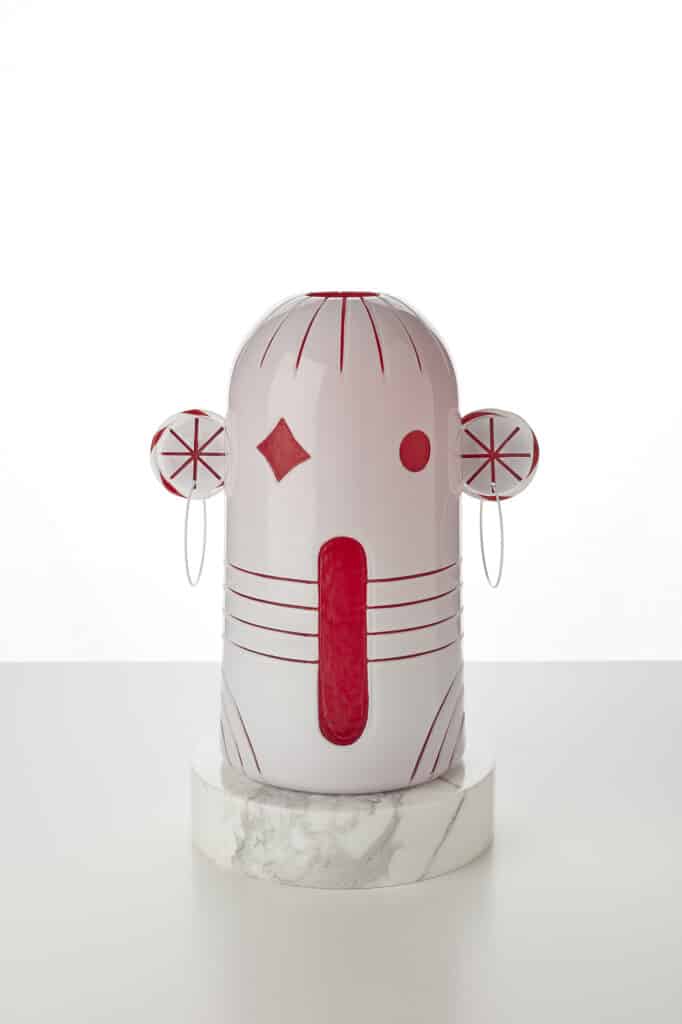 With Afrikando, Jaime Hayon builds a bridge between continents, cultures, and centuries of craftsmanship. This set of seven glass vessels—each a unique character yet part of a unified “family”—represents a bold fusion of African decorative traditions and the timeless art of Venetian glassblowing. Designed expressly for the Milwaukee Art Museum’s permanent collection, the work draws visual inspiration from African masks and ceremonial costumes seen by Hayon in ethnographic museums across the globe. Subtle mask-like features and ornamental forms speak to ancestral memory, while playful colors and whimsical silhouettes embody Hayon’s signature visual language—a mix of surrealism, humor, and storytelling.