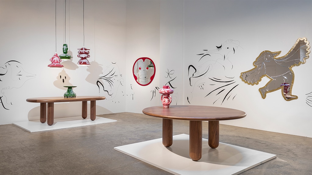 Atelier Wonderland, a solo exhibition at Galerie Kreo in Paris, unveils an original collection of 15 pieces, transcending the traditional boundaries of art and design. Taking over the entire gallery space, the exhibition translates his ebullient visual vocabulary across various mediums and signals a pivotal moment in his oeuvre. This exhibition illustrates Hayon’s dedication to exceptional craftsmanship, using traditional artisan techniques to produce colorful, contemporary pieces that translate his distinctive visual vocabulary onto different collectible objects.