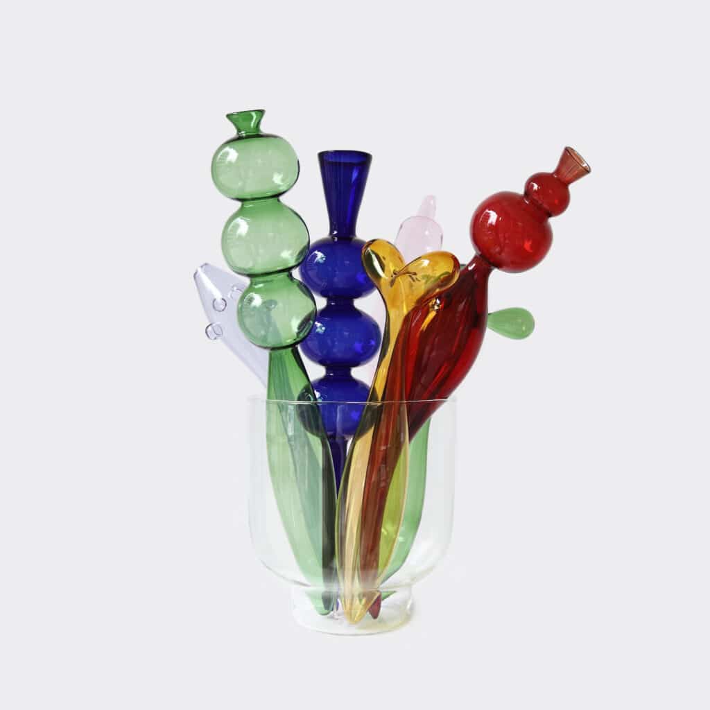 Among the featured pieces were the MonCirque lacquered table, a bold and sculptural object that blurred the lines between furniture and fine art, and a stunning collection of glass vases, showcasing Hayon’s elegant exploration of form, color, and transparency.