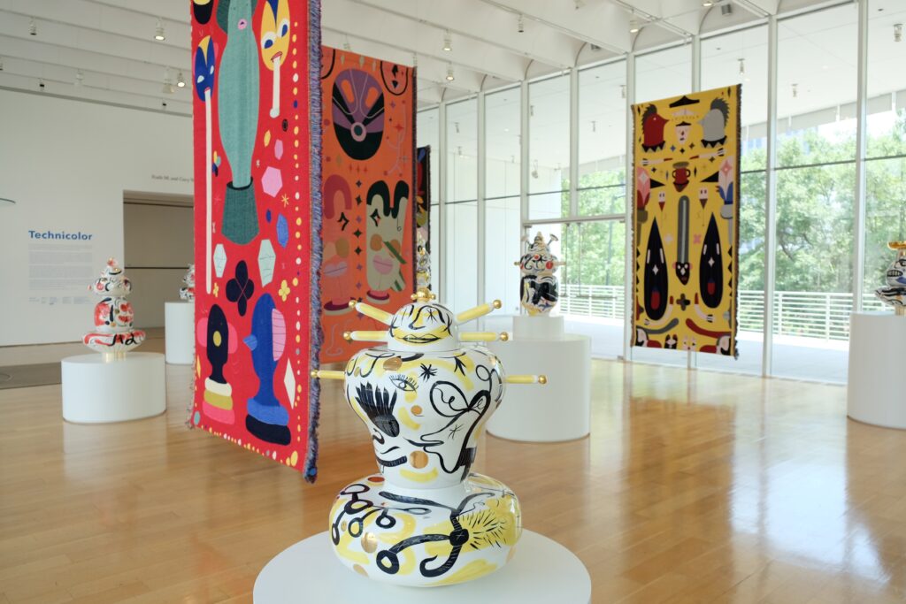 Concurrent with “Merry Go Zoo,” the High presents “Technicolor,” an immersive installation in the Museum’s Anne Cox Chambers Wing featuring dramatic new works by Hayon that the Museum commissioned to grow its significant 21st century design collection. This is the first solo U.S. exhibition for the artist. Six large-scale tapestries, inspired by designs Hayon created for last summer’s “Tiovivo” piazza installation, hang from the ceiling.