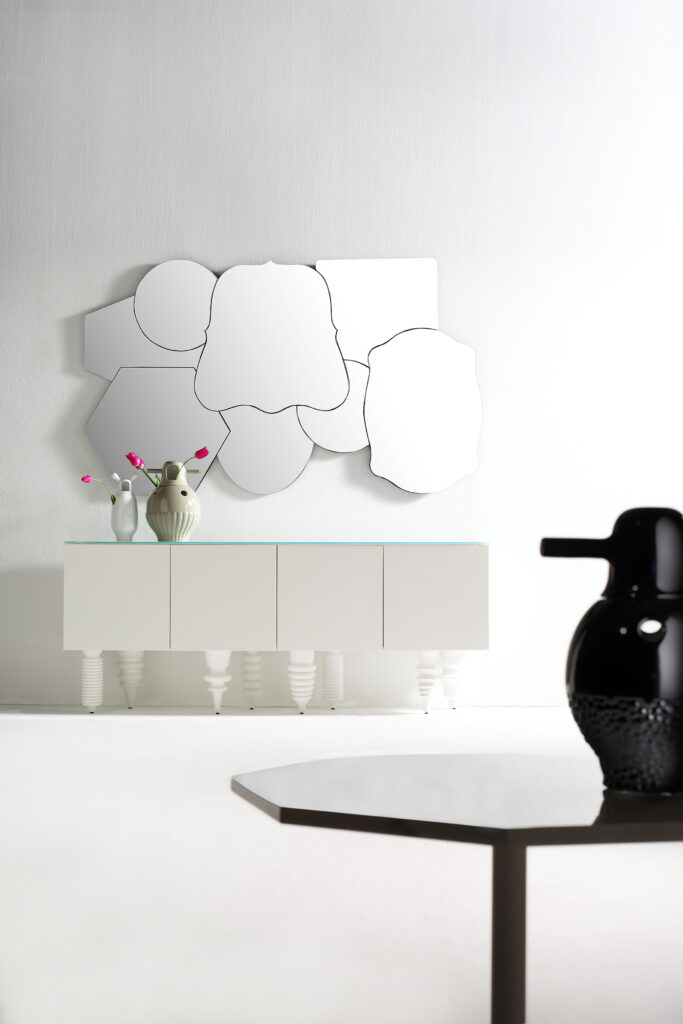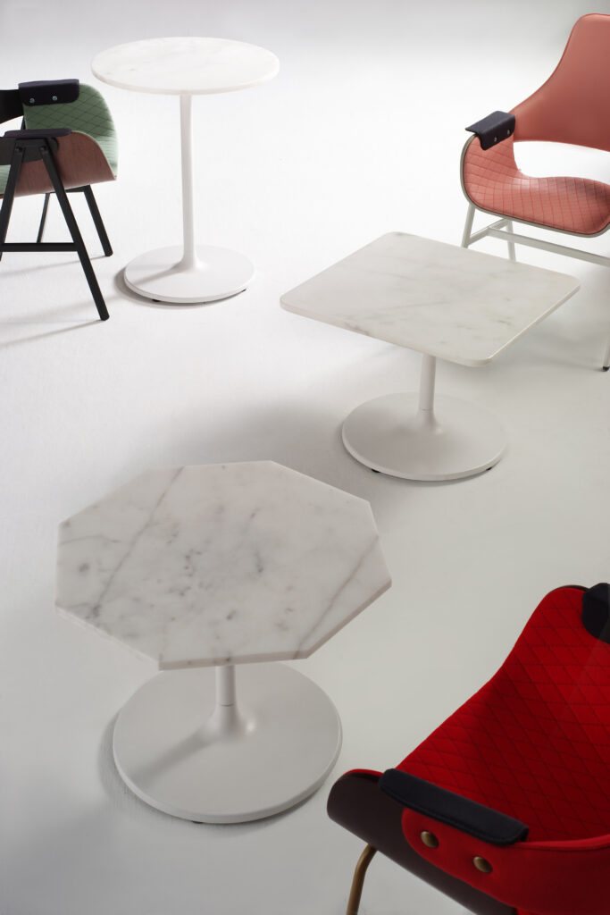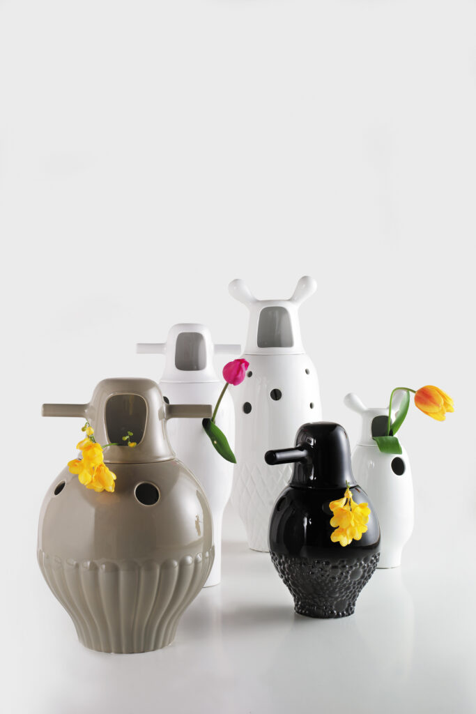 The Showtime collection (2006) by Jaime Hayon for BD Barcelona is a house collection built upon the central concept of contrast, specifically exploring the tension between exterior and interior. This is immediately evident in the unusual starting point: a garden chair that transforms into an indoor piece by applying different inner materials. Similarly, the armchairs (“poltronas”) suit both settings; the exterior versions are plain, while the interior ones sport a glossy outer shell. Hayon harmoniously combines organic forms and classical details, elements not typically matched, finding an elegant coexistence.