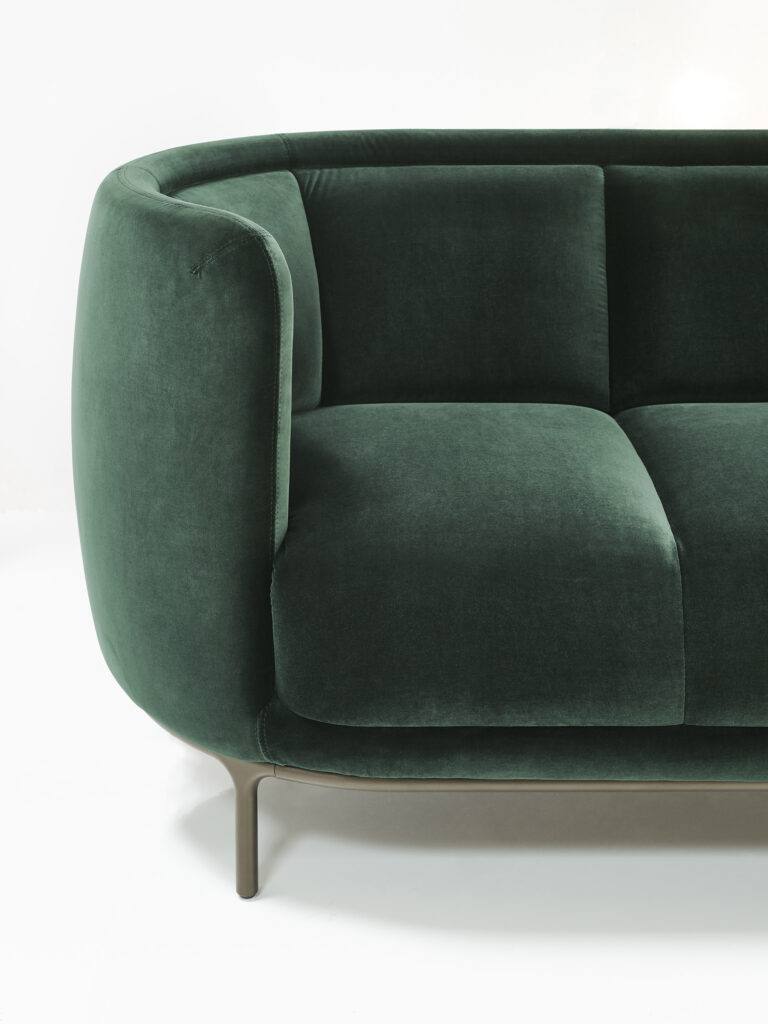 Vuelta offers exceptional versatility in its aesthetic. It can be dressed in eye-catching velvet to achieve an opulent, dramatic look, or upholstered in muted colors for an understated, elegant appeal. This adaptability allows it to effortlessly fit into a wide range of interior styles.