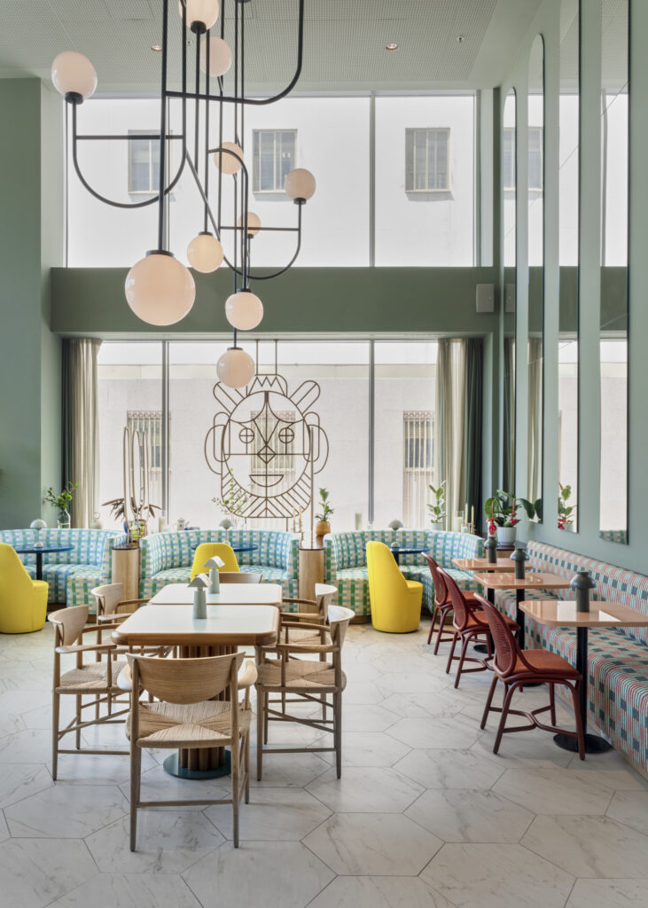 To shape the gastronomic space La Santa María, he drew inspiration from Madrid’s rich cultural heritage, Parisian bars, and the tropical jungle, blending contemporary design elements with a touch of fantasy. The new restaurant is, in fact, an evolution of the existing interior design previously created by Jaime Hayon. This time, he has crafted a distinctive space that maintains a harmonious color balance and, thanks to its high ceilings, offers a spectacular ambiance.