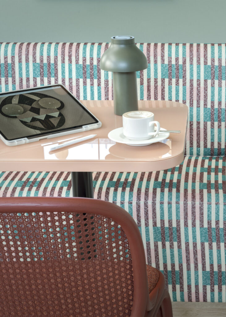 The accessories adorning La Santa María have been carefully selected, each contributing depth and character. Additionally, various seating arrangements have been designed to ensure visitors feel comfortable and can spend hours enjoying the food, coffee, and the company of family and friends. The goal is to transform the dining experience into an art-inspired journey in the heart of Madrid.