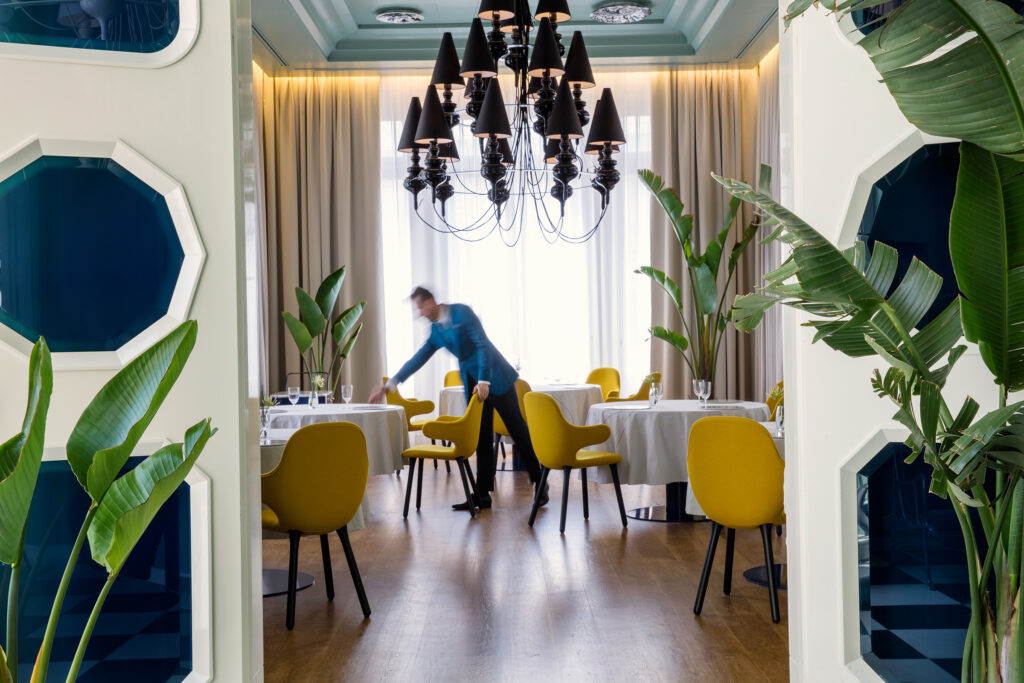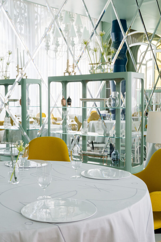 In this new phase, the space captivates with soft lines, rounded shapes, and playful elements so characteristic of Hayon’s world. All of this is presented in shades of blue and aquamarine green, accentuated by striking golden decorative elements. As Hayon describes it, “La Terraza del Casino has always been a platform for experimentation for me, a temple of gastronomy, but also a place where interior design becomes art, where color flows and furniture tells stories, details that narrate dreams.”
