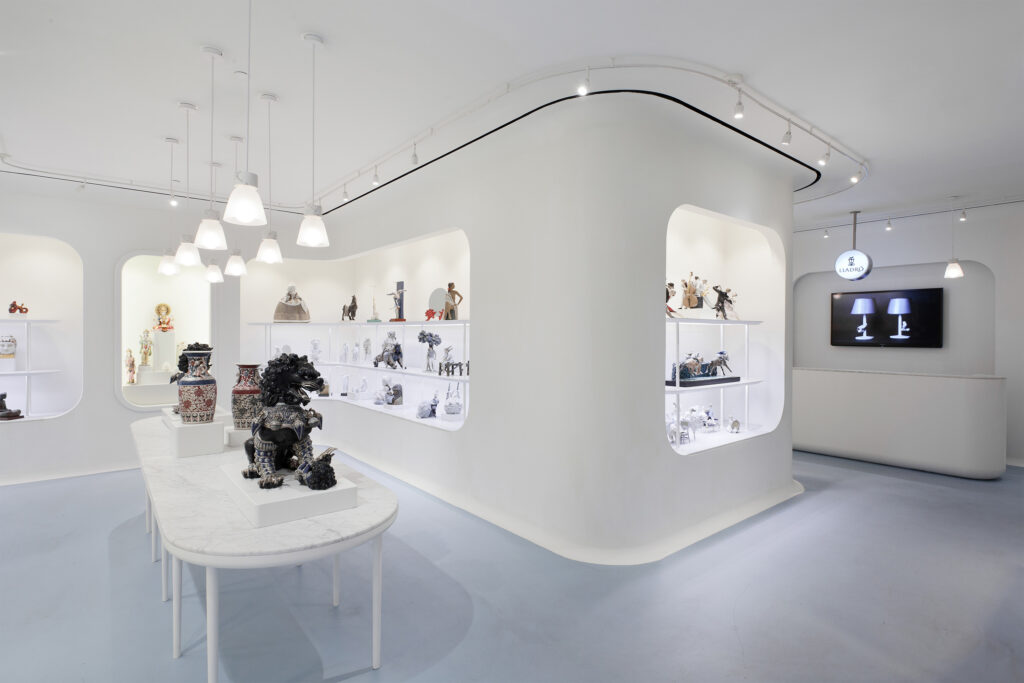 The new Lladrò boutique at 500 Madison Avenue in New York City designed by Jaime Hayon has a unique style, where the colour white and the curved shapes are predominant resulting in a fresh and modern look.